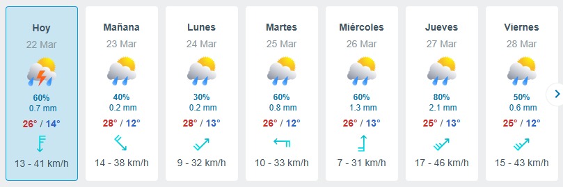 Para la capital poblana, se prevé una probabilidad de lluvia del 60 por ciento, con temperaturas máximas de 26°C y cielo nublado. Para el domingo 23 de marzo, se pronostica un aumento de temperatura alcanzando los 28°.