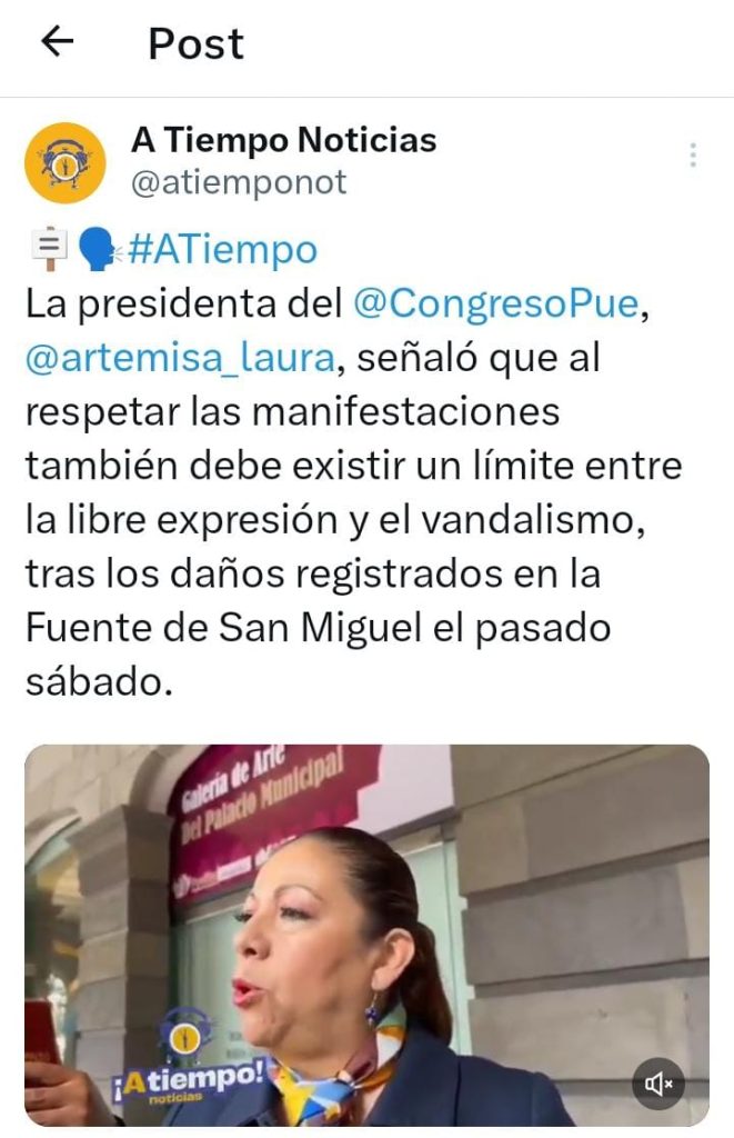García Chávez indicó que se debe respetar el derecho a manifestarse, pero también proteger el patrimonio. Las autoridades no han informado aún sobre posibles responsables ni sobre el costo de los daños causados al monumento.