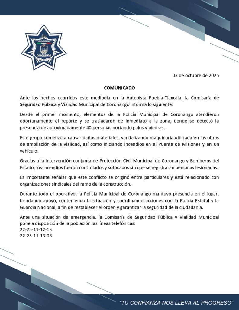 El conato de bronca generó la movilización de elementos de seguridad pública de Puebla (Coronango), Tlaxcala y de la Guardia Nacional.